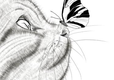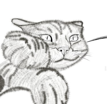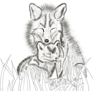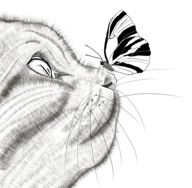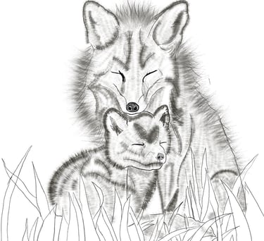 Line and texture work together to convey instinct, connection, and quiet presence.