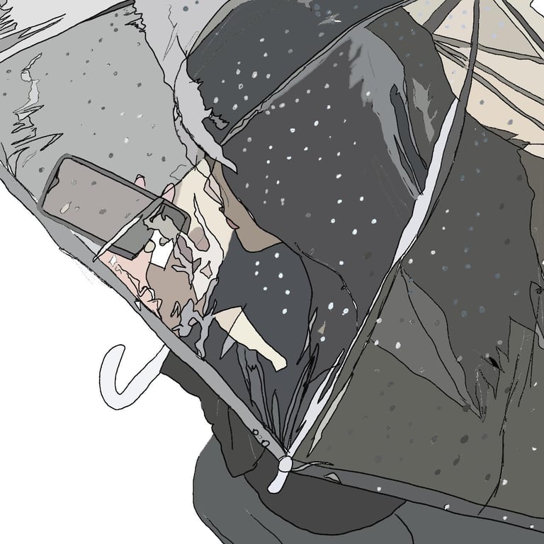Environment and emotion merge, allowing the figure to exist within a broader atmospheric context.