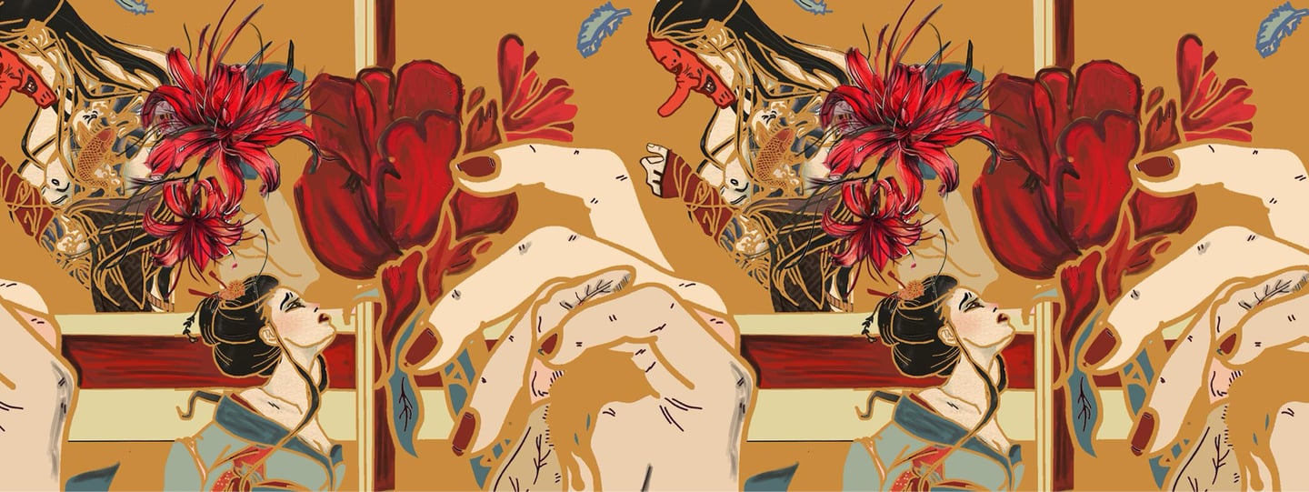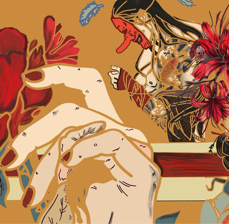 Sa-Koi is a design practice rooted in storytelling — where each textile becomes a living surface carrying fragments of emotion, symbolism, and transformation. Drawing inspiration from Japanese visual language, such as koi fish and cherry blossoms, and merging it with the richness of South Asian textile traditions, the work exists between cultures, disciplines, and mediums.