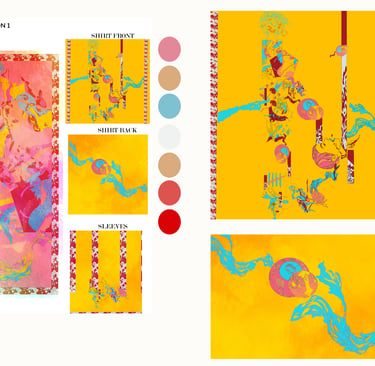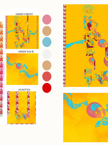 Rather than treating fabric as decoration, Sa-Koi approaches textiles as narrative systems — where motifs evolve, repeat, and flow across garments and spaces. Each piece is designed to move with the body, creating a dialogue between wearer, material, and story.